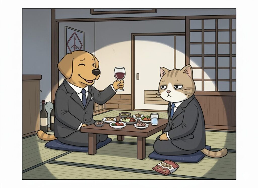 基本的には正座で話を聞かなければならないし、料理も社長が手を付けた後、食べても良いとの号令がなければ箸をつけられない。しかも飲食店なのに秘書の作ったおつまみを持参したり、お酒を持ち込んだりとやりたい放題だ。